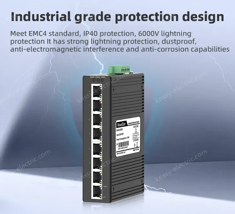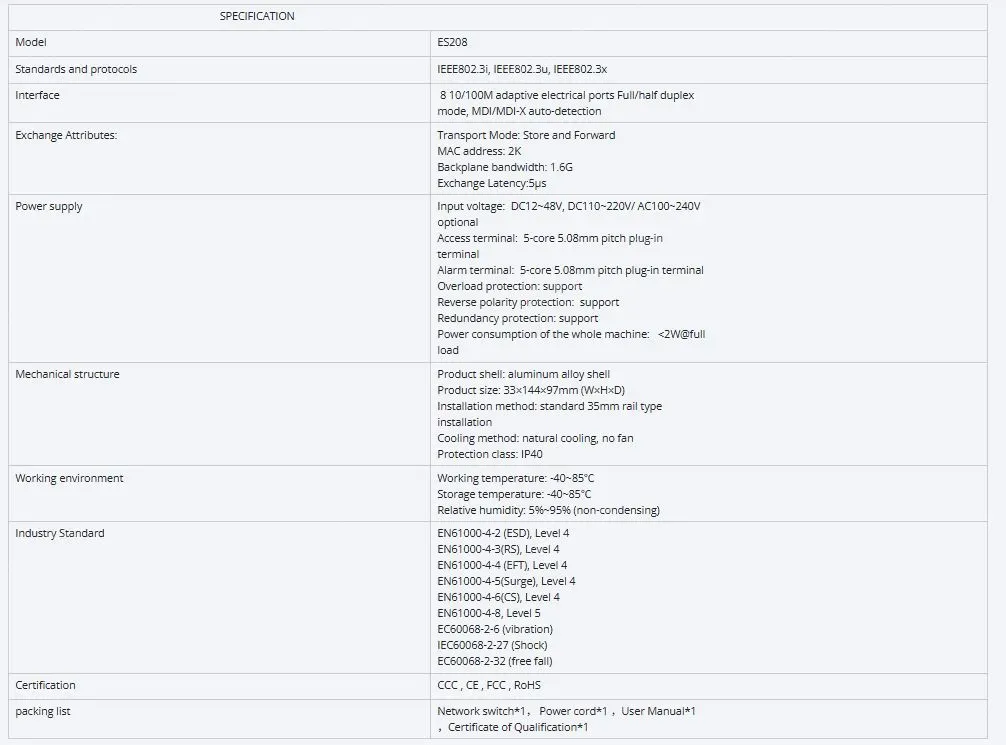 • 8 Ports 10/100M T(x) Din-Rail Unmanaged Industrial Ethernet Switch