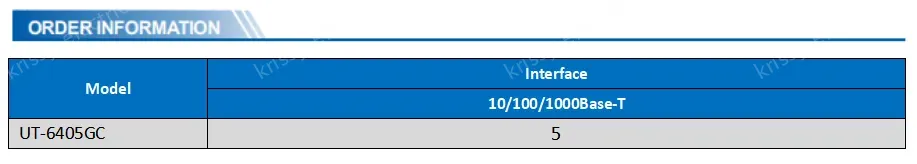UT-6405GC is a 5-port full Gigabit unmanaged Ethernet switch, providing 5 1000Base-T Ethernet port, which supports -20~70°C operating temperature and good EMC performance, and also supports industrial standard DIN-rail mounting to ensure normal operation in harsh environments, so it is very easy to install and apply on any industrial network.